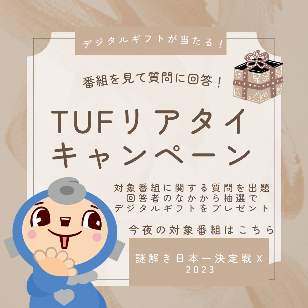 \\予告// 対象番組を見て質問に回答すると 抽選でデジタルギフトプレゼント🎁 今夜の対象番組は… よる9時からの #謎解き日本一決...