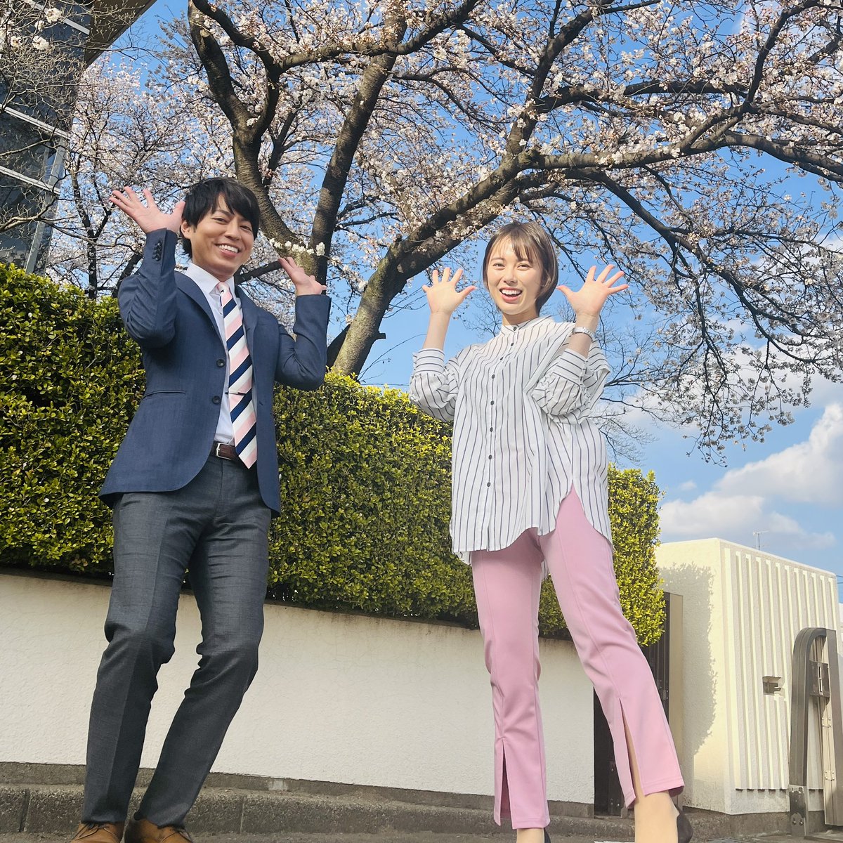 TUF本社前の桜は5分咲き🌸#福の空 放送後に学んだんですが「肌寒い」は秋に使う言葉なんですって春は「空気ひんやり」と言った表現...