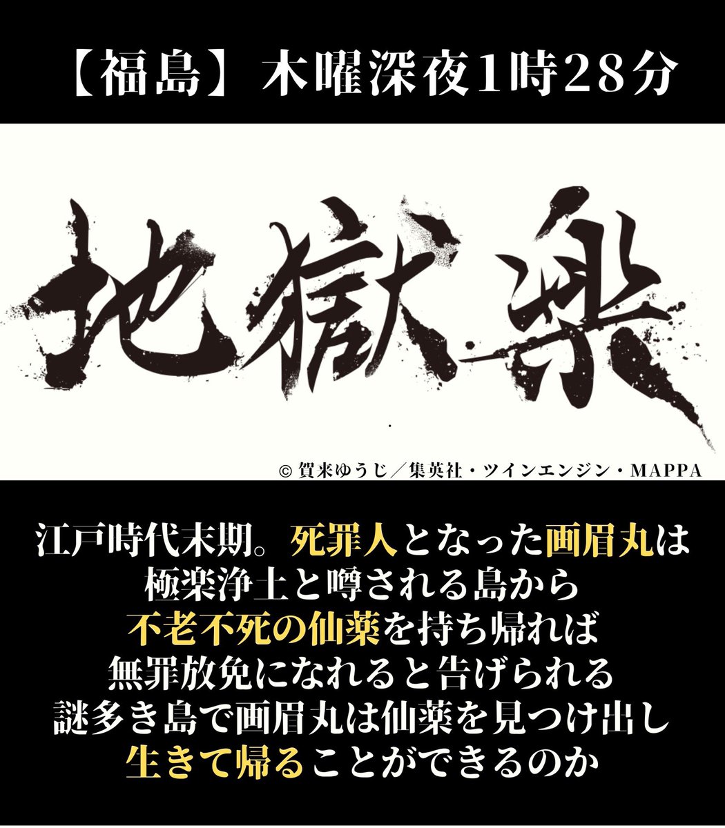 今週は新アニメが2本スタート🌈★4/20木曜深夜 #地獄楽★4/21金曜深夜 #イセスマ