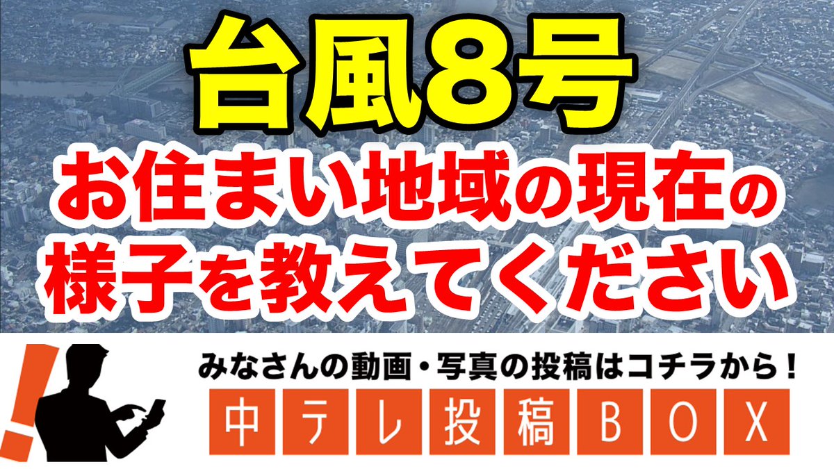 【動画や写真を募集中】台風8号 皆さんのお住まいの地域の状況はいかがでしょうか?現在の様子を中テレ投稿BOXまでお寄せください。...
