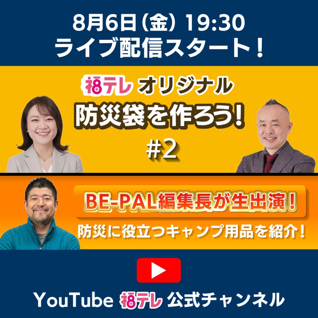 今夜19時30分からYouTube福テレ公式チャンネルで「福テレオリジナル防災袋を作ろう!#2」をライブ配信します!