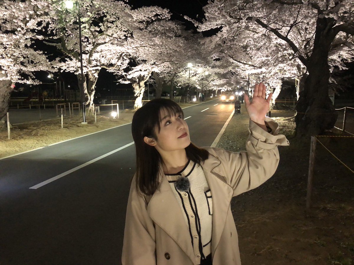 昨日幡谷アナがテレポートプラスの新コーナーあすNAVIで中継した富岡町夜の森の桜の様子です🌸