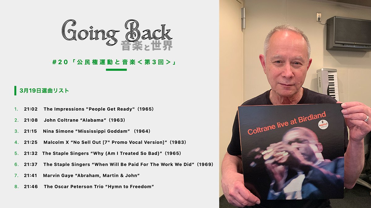 【Going Back - 音楽と世界】「 #20 公民権運動と音楽③」#goingback #ふくしまFM選曲リストを、番組WEBサイトに掲載してい...