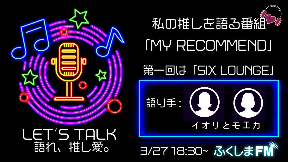 この後18:30~ あなたの推しを 思う存分語る番組📻「#MYRECOMMEND」第一回は「#SIXLOUNGE 」✅推しへの愛を語りたい、私の推し...