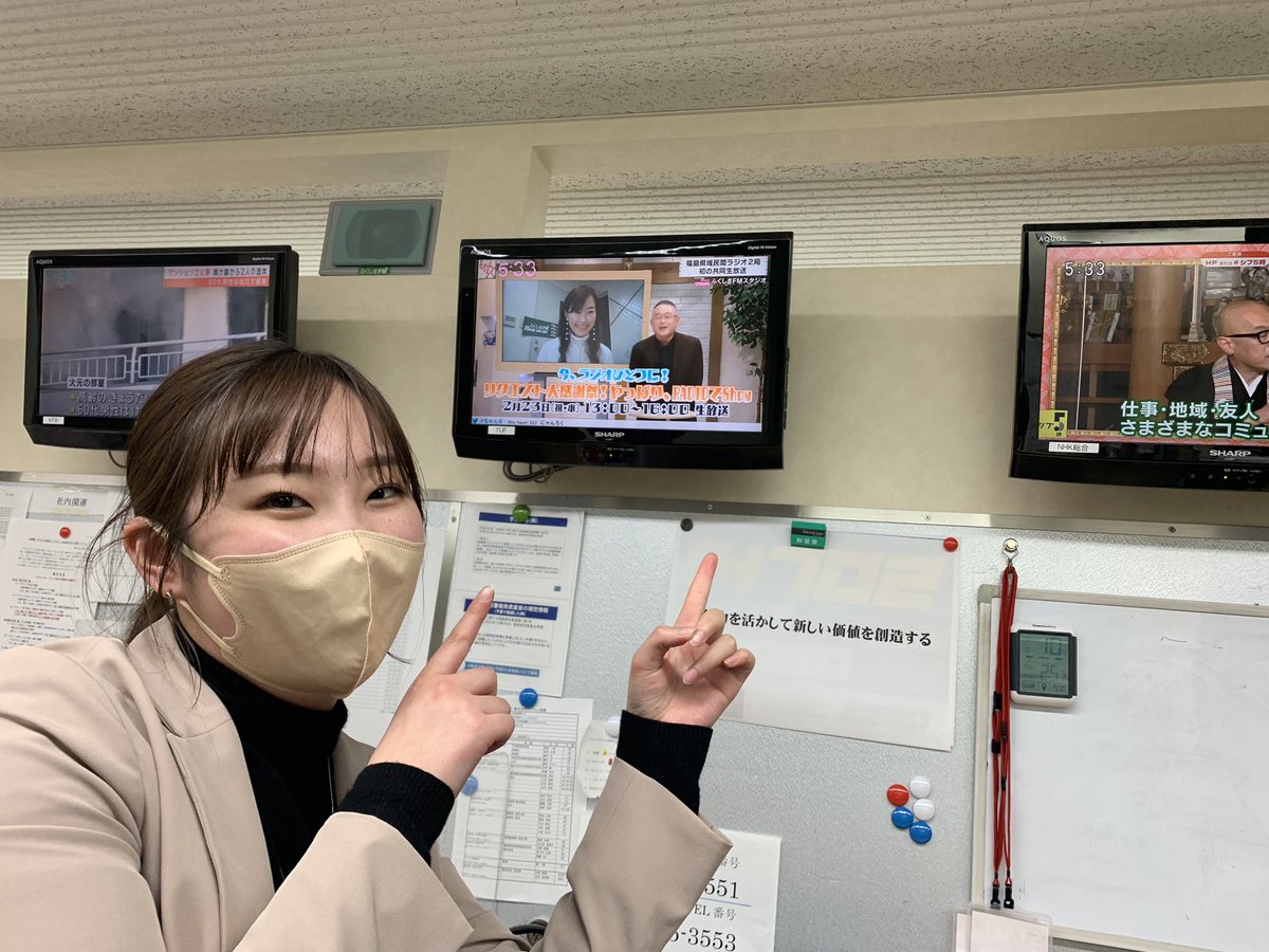 テレビユー福島『(@tuf_chan6 )』に、明日の共同特番の紹介で、三吉アナとラジオ福島・鏡田アナでお邪魔しました🙇♂️