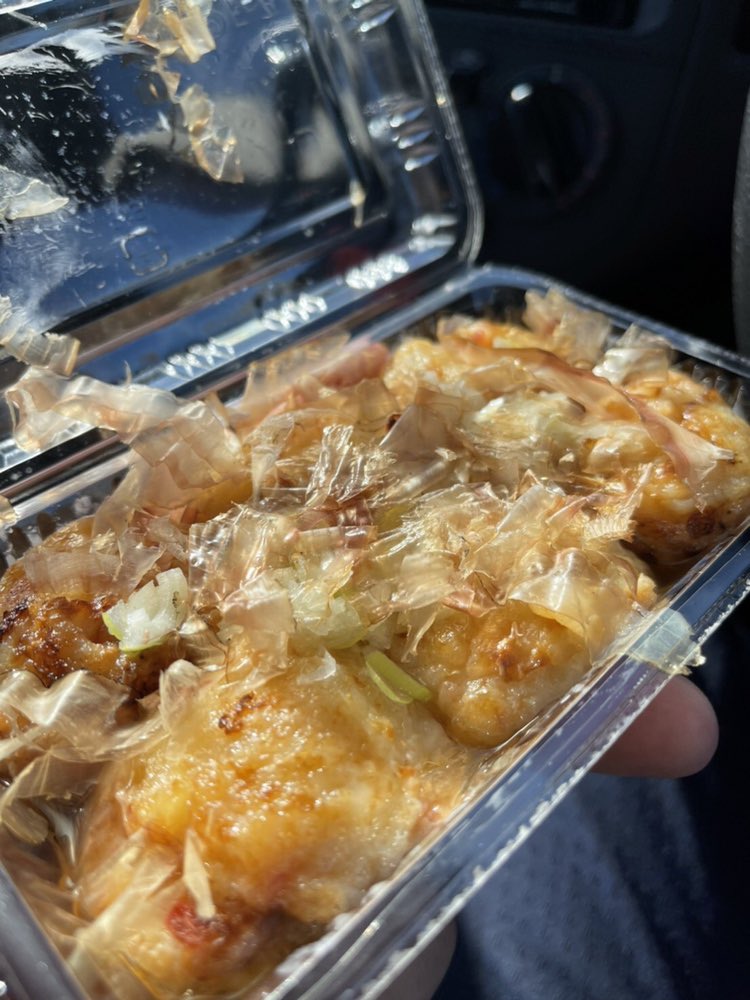 大熊町役場前、知床屋さん移動販売で刻みネギだしのたこ焼きをテイクアウト👍@shiretokoya #テイクアウト #大熊町