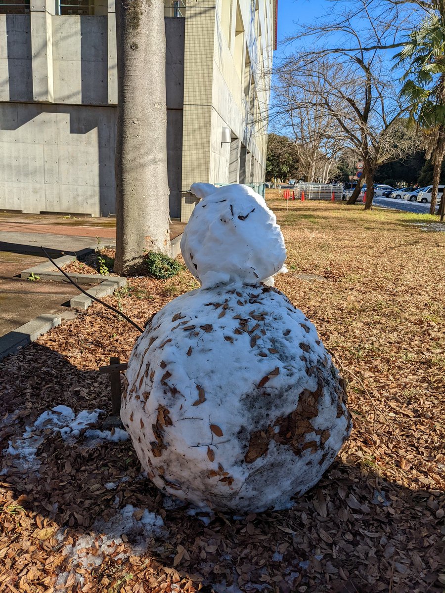 農工大の中に雪だるまあった。
