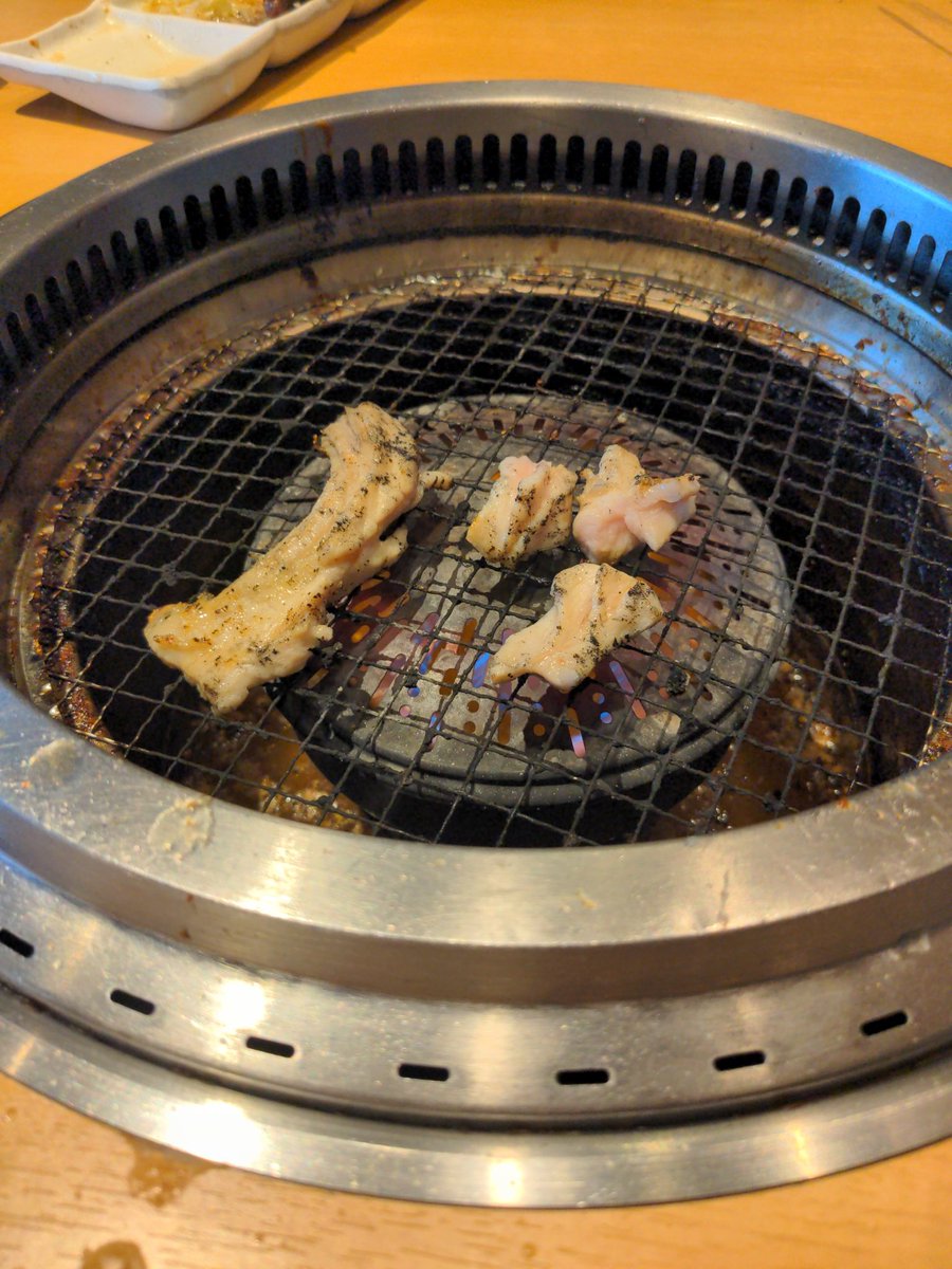 焼肉きんぐ。お腹いっぱいの状態で頼んだミノは、あと何回噛めばいいんだろうか?