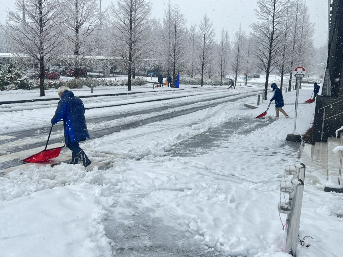 昨日までの天気☀から一転ピッチが真っ白❄️☃️スタッフで雪かきしました💦お越しの際は足元にご注意ください🙇♂️#Jヴィレッジ #JVIL...