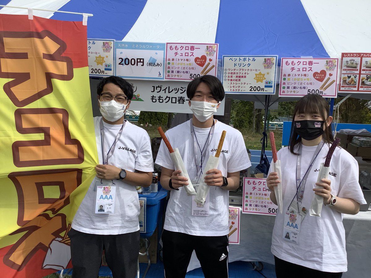 ❤️💛ももクロカラーのチュロス💓💜チュロスチームも今日も元気に出来たてチュロスを販売中です🌸ももクロ×Jヴィレッジコラボグッズの隣...
