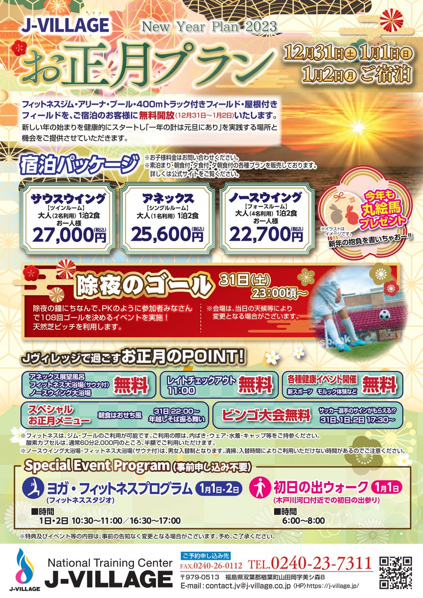 特典盛りだくさん!年末年始はJヴィレッジで!🎍Jヴィレッジお正月プラン販売中🌅⚽ピッチ無料開放🥅大晦日/元旦限定イベント開催🏋...