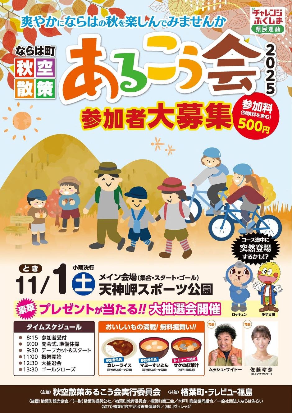 ならは町秋空散策あるこう会2025(テレビユー福島ホームページ)申込フォームよりお申し込みください。